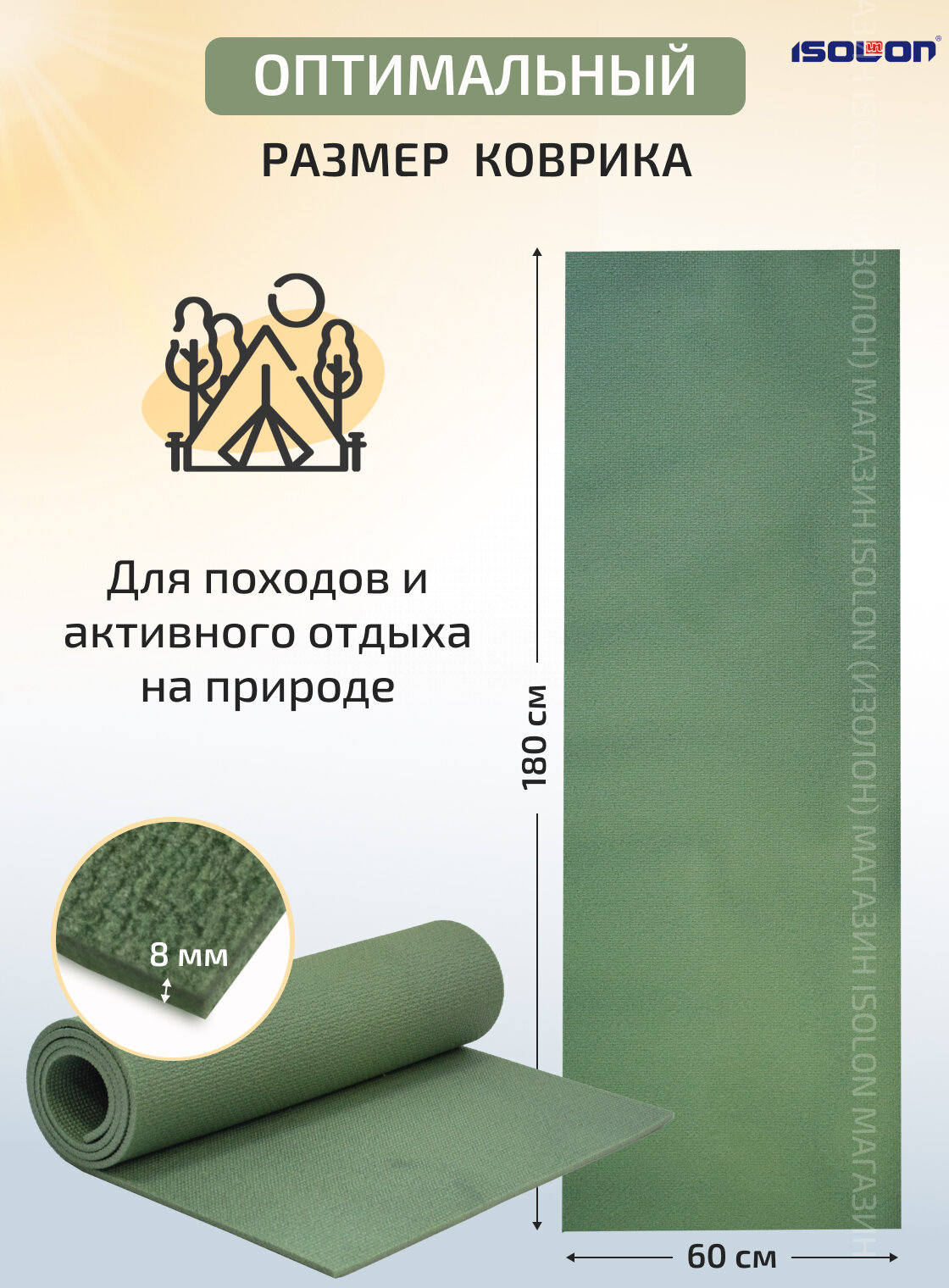 Коврик спортивный и туристический для похода и отдыха ISOLON Optima Light 8, 180х60 см зеленый 649 ₽ Подробнее