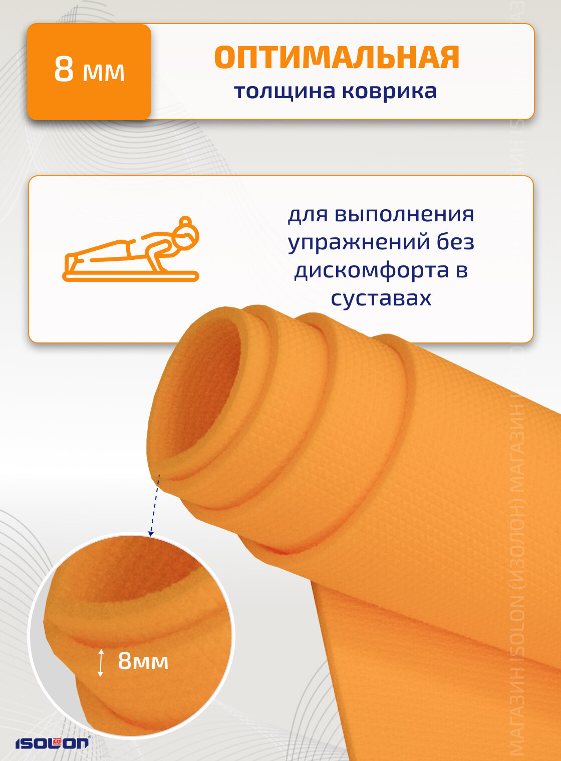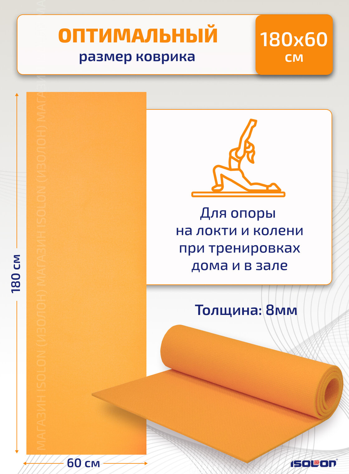 Туристические коврики Коврик спортивный и туристический для похода и отдыха ISOLON Optima Light 8, 180х60 см оранжевый