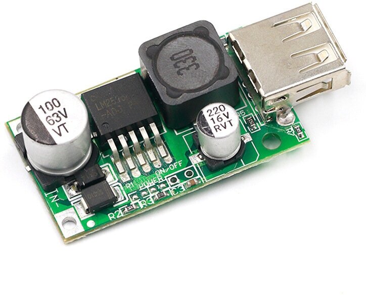 Инверторы и контроллеры Понижающий преобразователь напряжения DC-DC GSMIN LM2596HV HW-731, 3А (вход 9-48В выход 5В) модуль зарядного устройства USB (Зеленый)