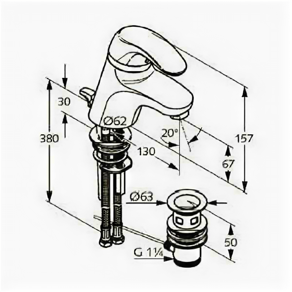 Смеситель Смеситель для раковины Kludi York с донным клапаном (393290580)