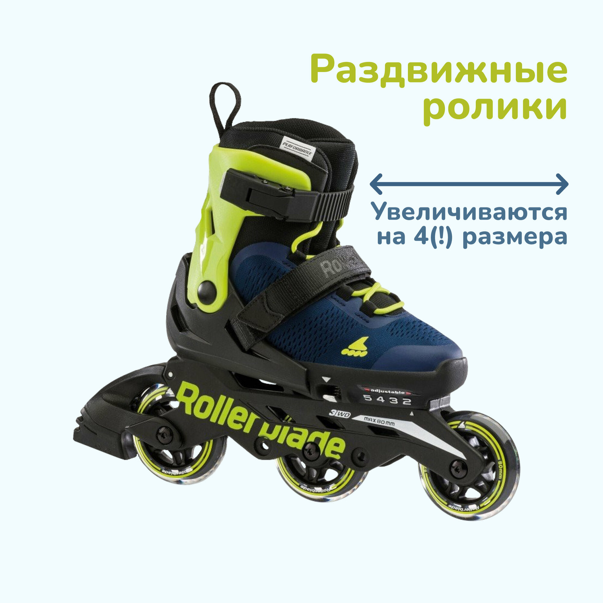 Роликовые коньки Детские роликовые коньки Rollerblade MICROBLADE 3WD blue royal/lime 2023 (33-36,5)