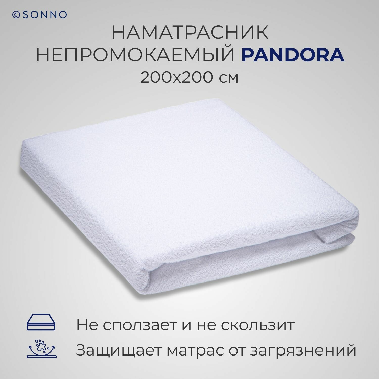 Матрасы Наматрасник аквастоп SONNO PANDORA, непромокаемый, мягкий, защитный, махровый, водонепроницаемый, на резинке по всему периметру, 200х200 см
