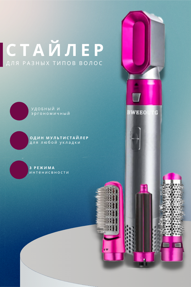 Фены и приборы для укладки Мультиcтайлер Фен 5 В 1 с насадками для бережного ухода и ионизацией
