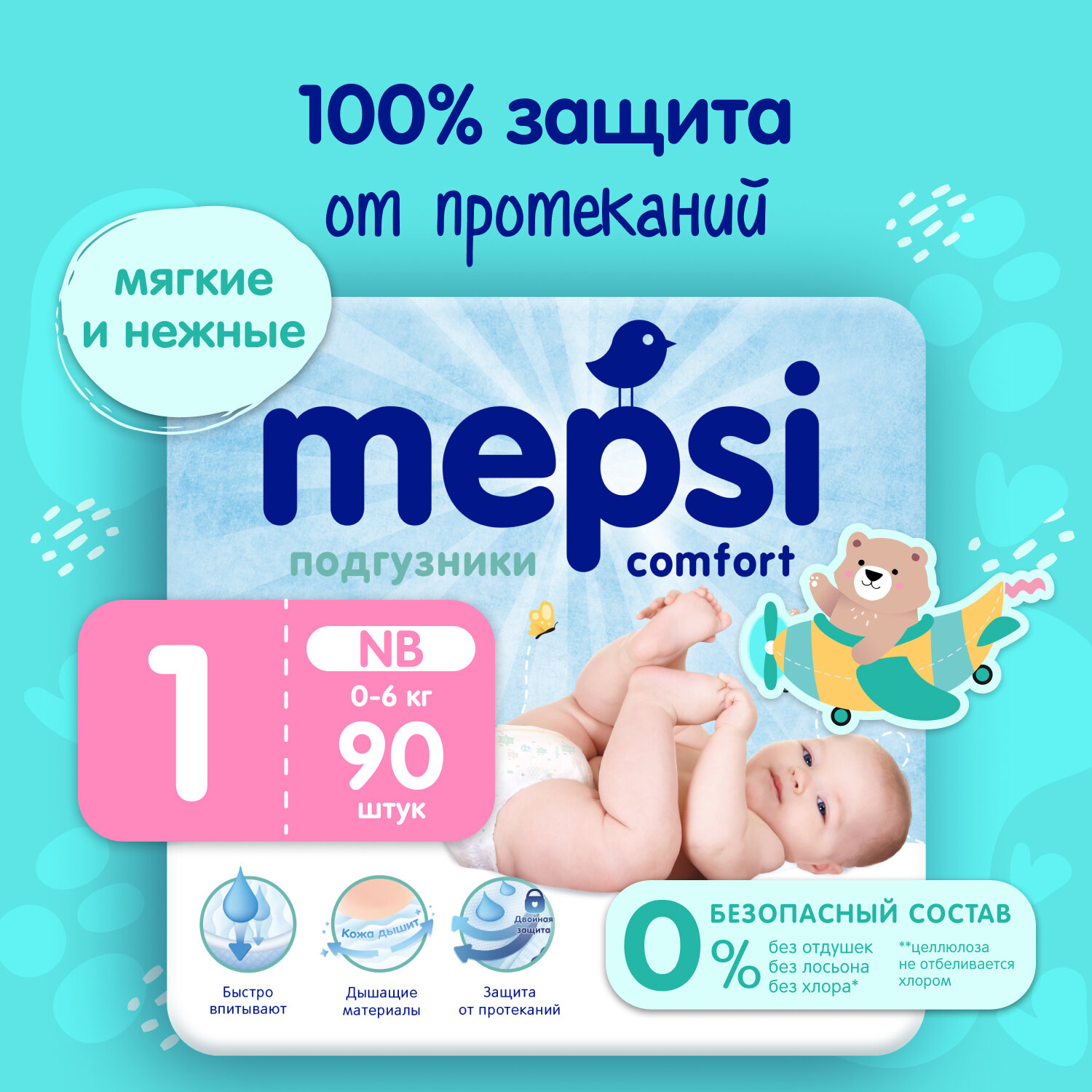 Подгузники для детей MEPSI NB (до 6кг) 90 шт/уп