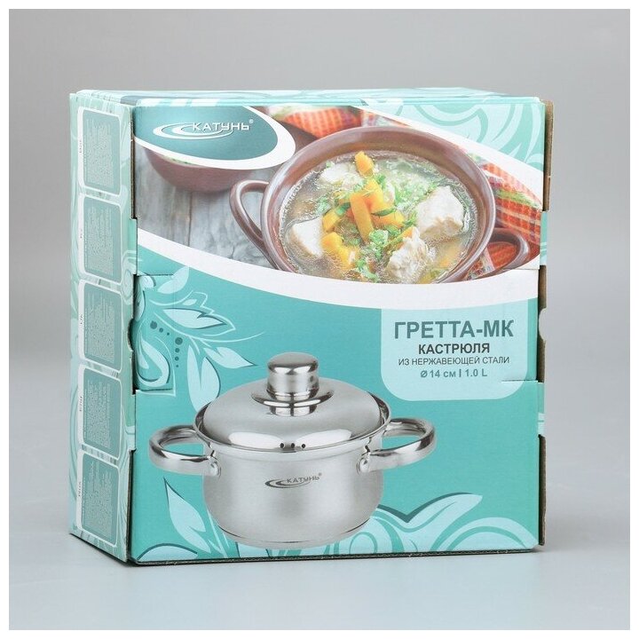 Кастрюля 1 л катунь, гретта-мк, КТ04-D-14М, нерж.сталь, зеркальная полировка