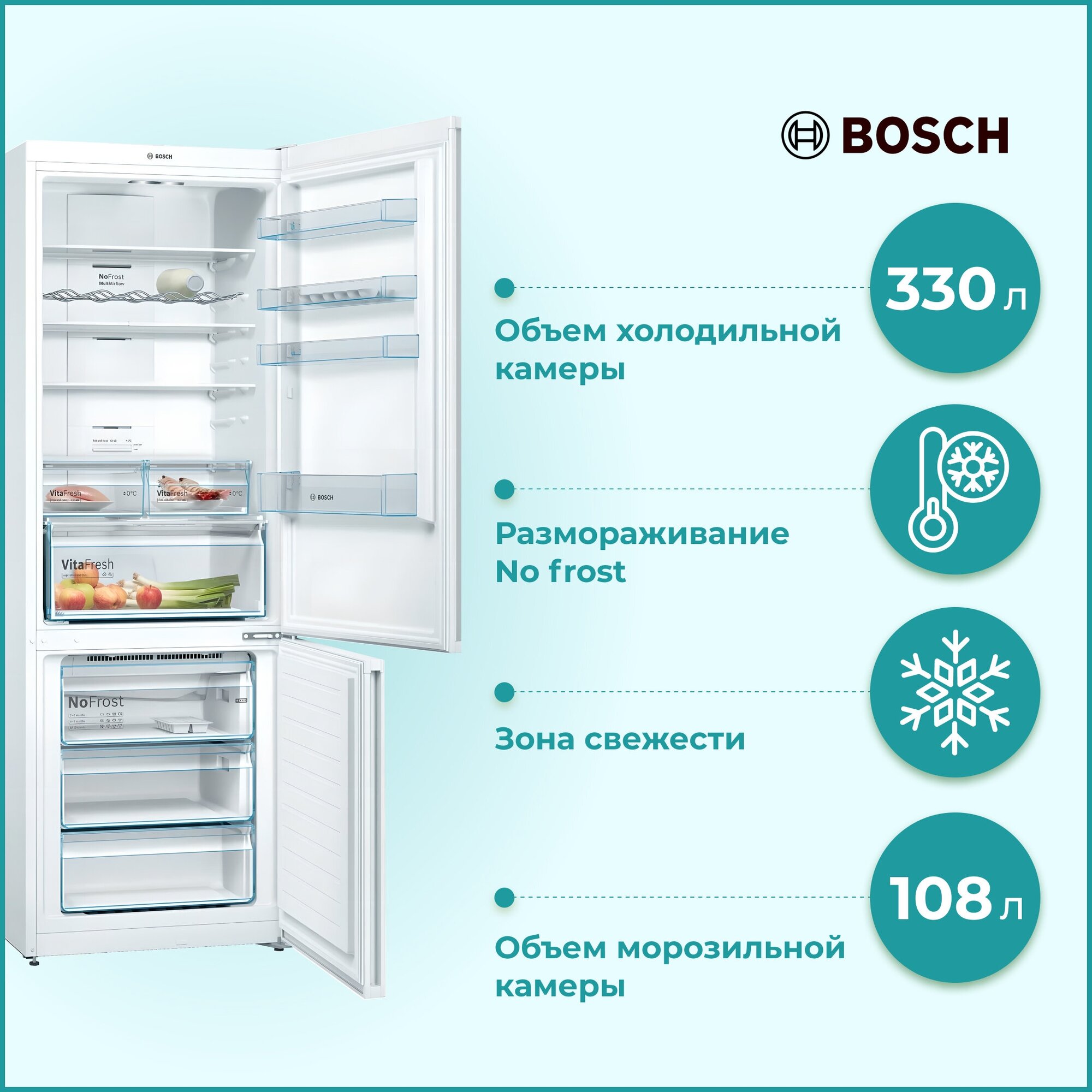 Холодильник BOSCH KGN49XWEA VitaFresh 126 163 ₽ Подробнее