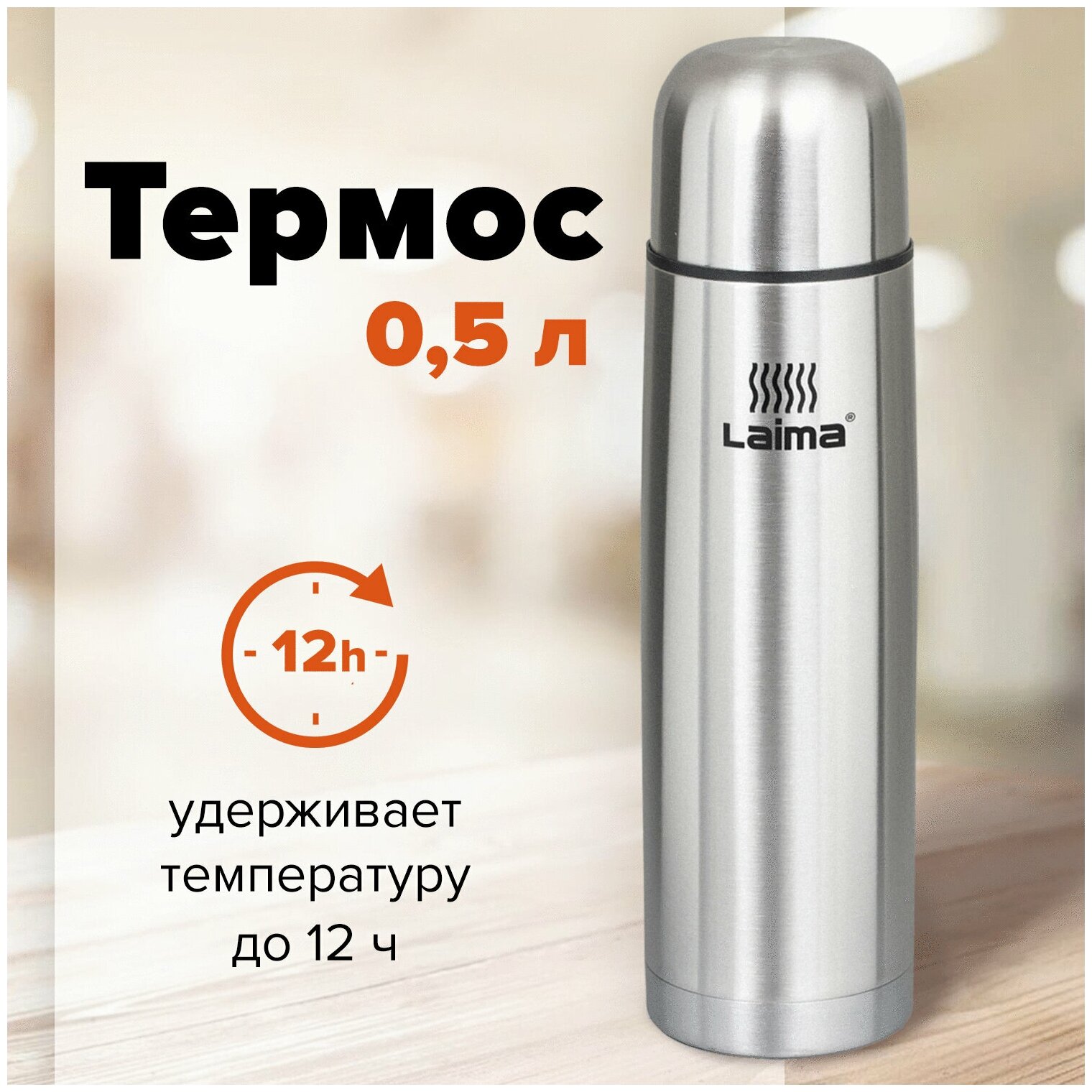 Термос LAIMA классический с узким горлом, 0,5 л, нержавеющая сталь