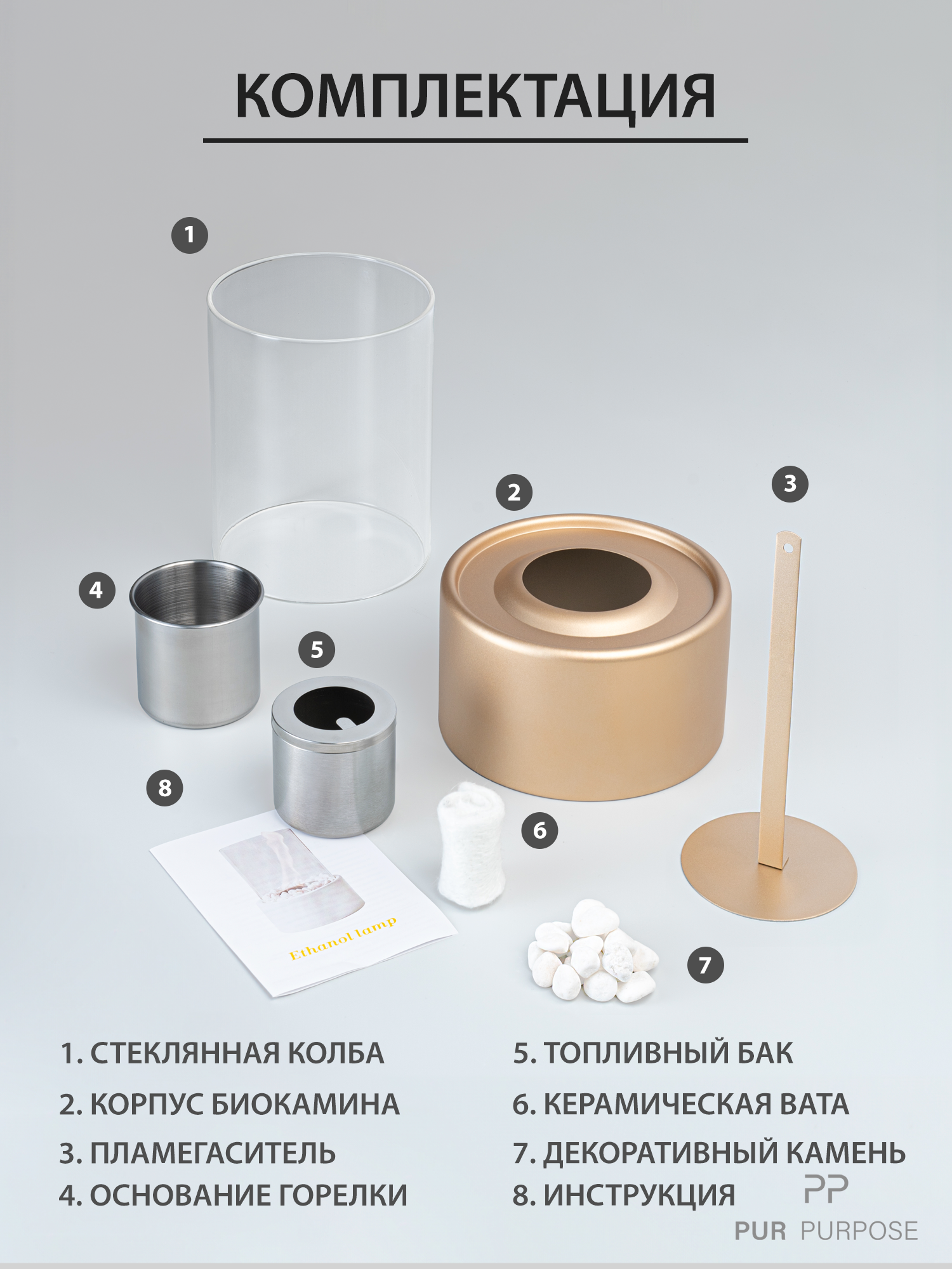 Электрокамины Биокамин настольный 27 см, декоративный спиртовой био камин для дома и офиса, золотой