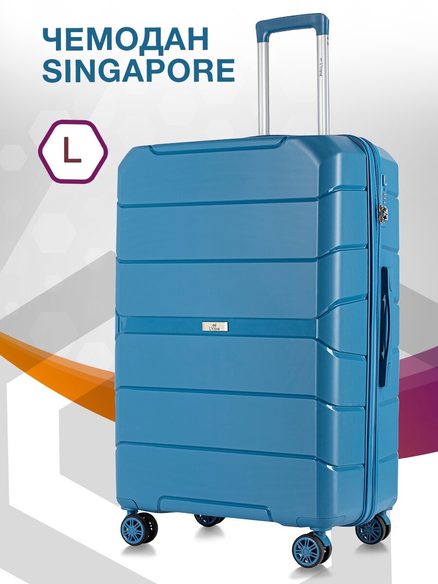 Чемоданы Чемодан на колесах Lcase Singapore, Синий. Большой L, полипропилен. Дорожный чемодан на колесиках для путешествий и поездок.