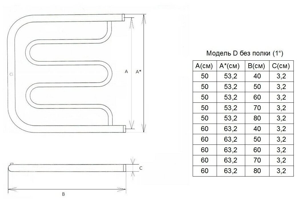 Полотенцесушители Полотенцесушитель двин "D" 50/60 Водяной Полированный без полки (Круглая труба 1"-½")