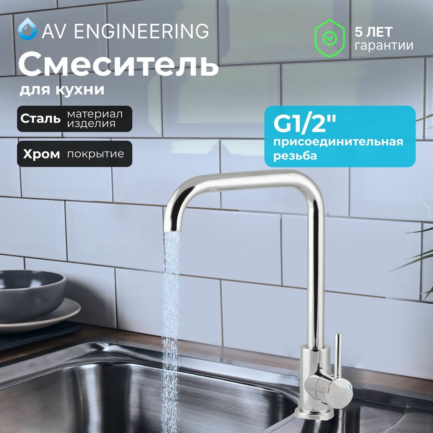 Смеситель для кухни (SUS 304) D35 AVZAR4-B304CH хром AV Engineering (Поворотный излив, длина 21 см, высота 25 см) (AVZAR4-B304CH-735) 3 050 ₽ Подробнее
