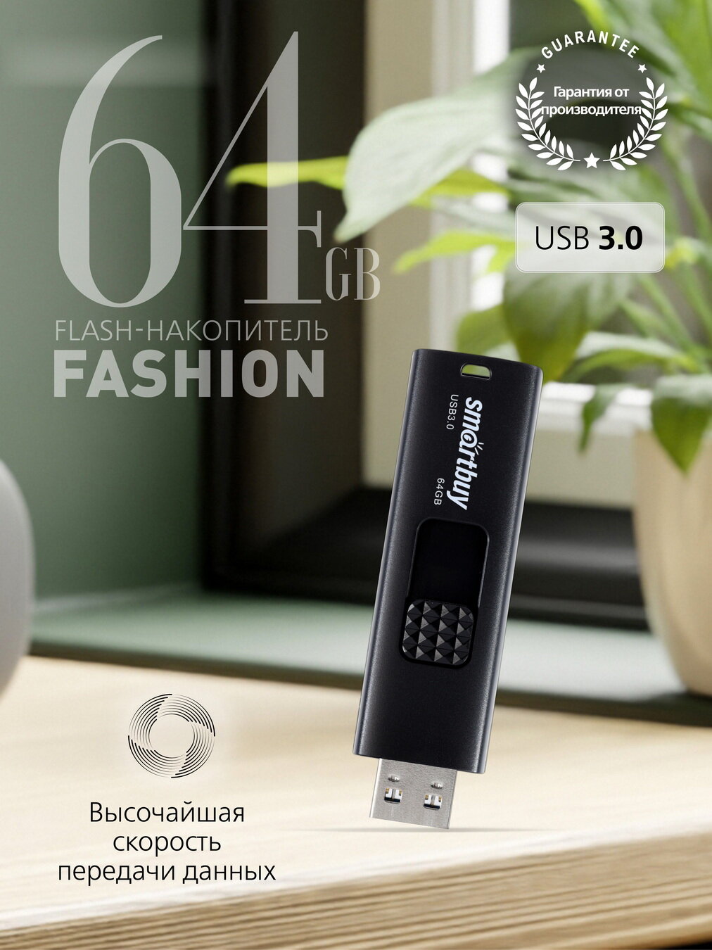 Флешка 64 ГБ USB 3.0 Smartbuy Fashion Black