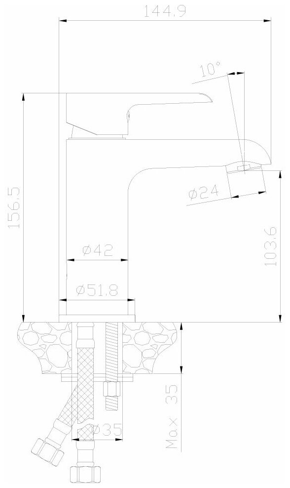 Смеситель для умывальника W35-12 монолитный (хром/белый) "ROSSINKA"