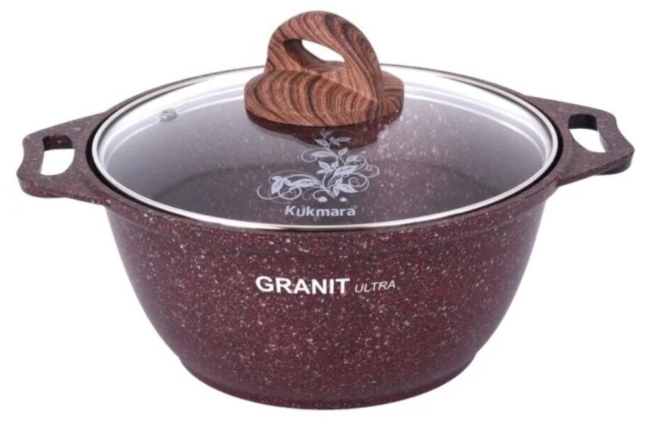 KUKMARA Кастрюля Granit ultra, 3 л, стеклянная крышка, антипригарное покрытие