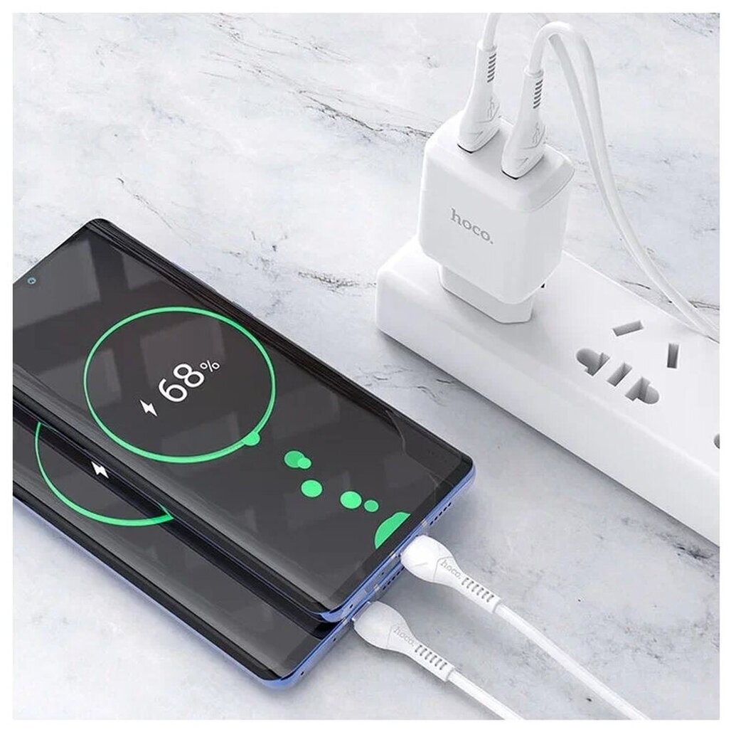 Адаптер питания Hoco N7 Speedy dual port charger с кабелем Type-C (2USB: 5V max 2.1A) Белый