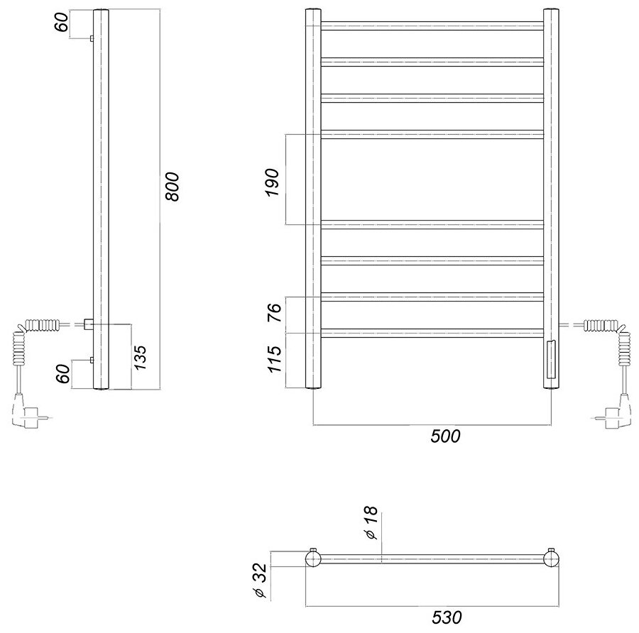 Полотенцесушитель ДМТ Медея П8 500х800 EK R