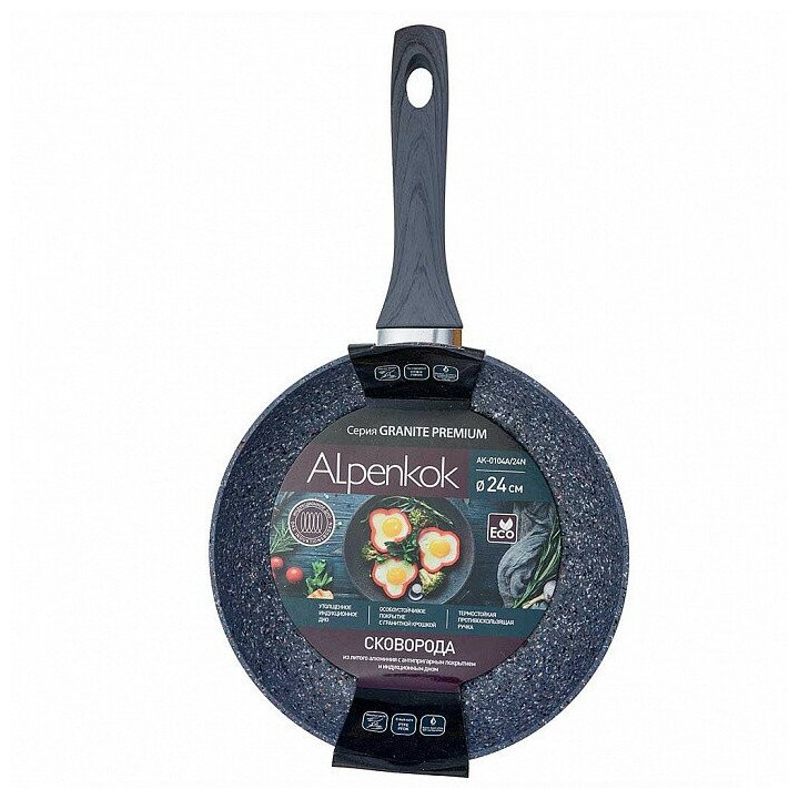 Сковородка Сковорода алюминиевая Alpenkok "Granit premium" с антипригарным покрытием, 24 см, артикул AK-0104A/24N