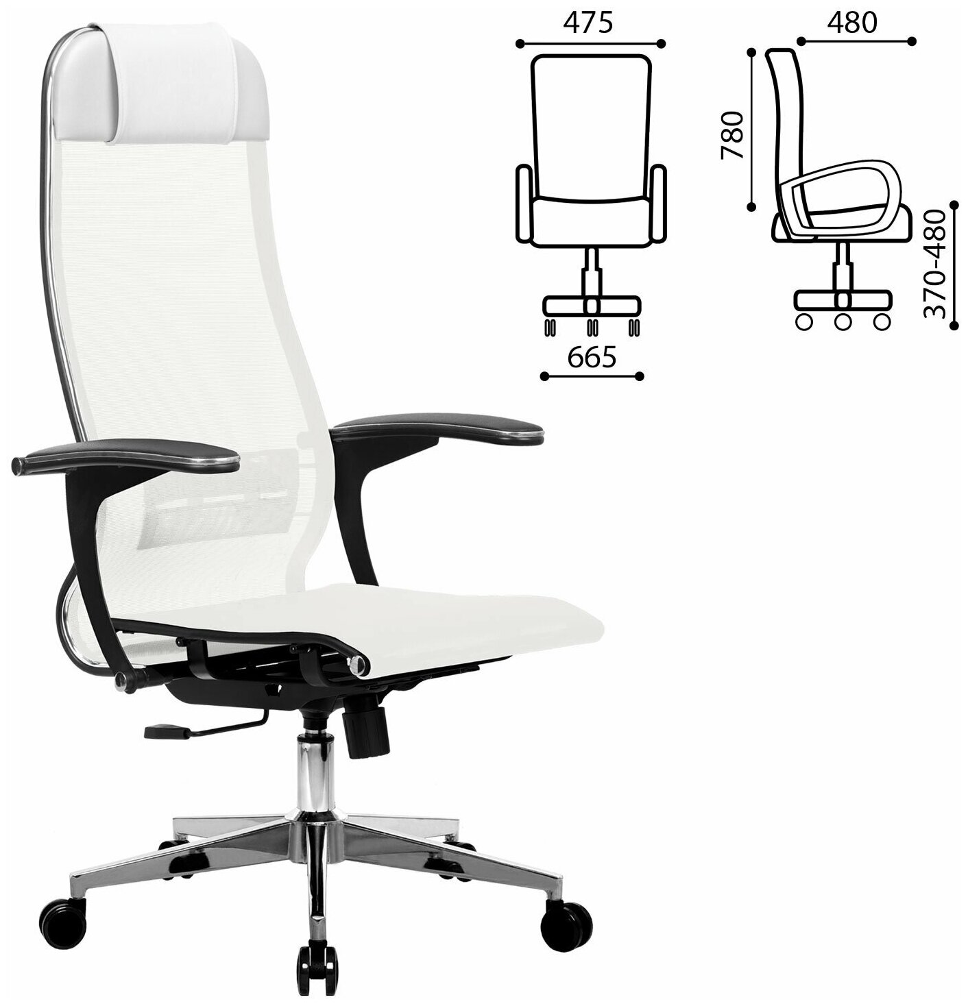 Компьютерные кресла Кресло офисное метта "К-4-Т" хром, прочная сетка, сиденье и спинка регулируемые, белое В комплекте: 1шт.