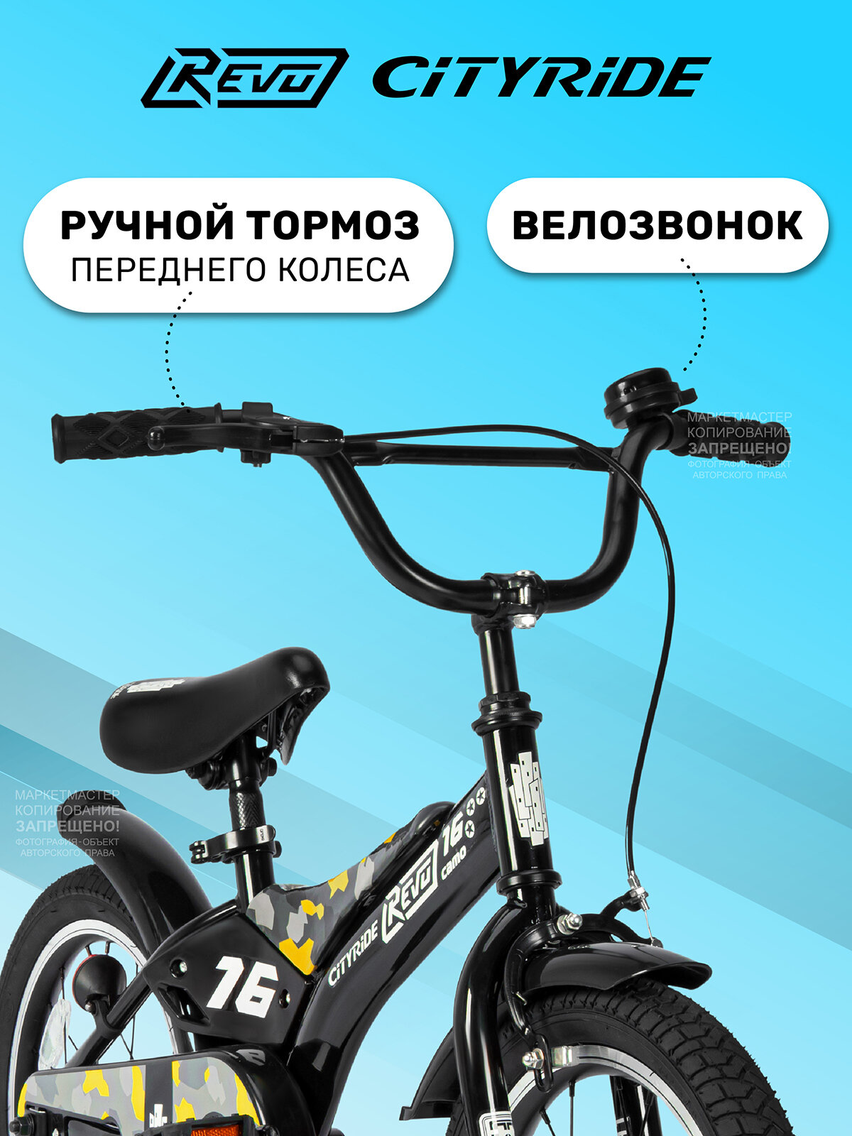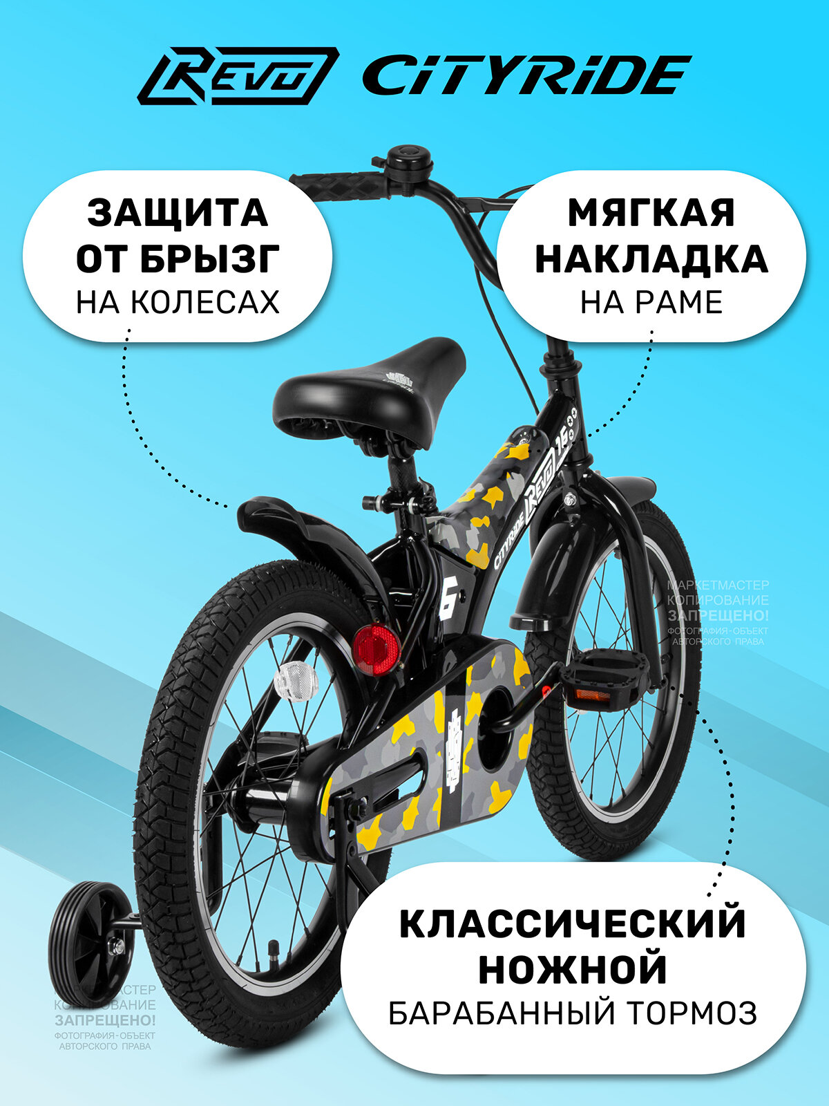 Детский велосипед Велосипед детский двухколесный CITYRIDE REVO, радиус 16", страховочные колеса, для мальчиков/девочек, CR-B2-0516YW