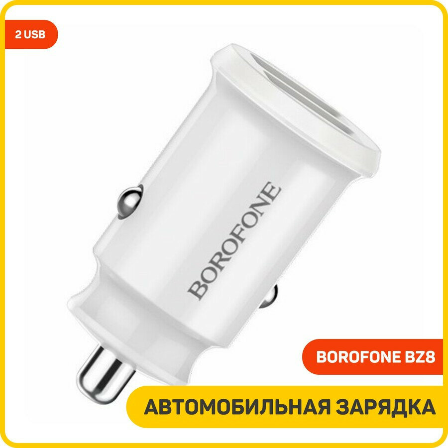 Автомобильное зарядное устройство BOROFONE BZ8 MaxRide, 2xUSB, 2.4A, белый