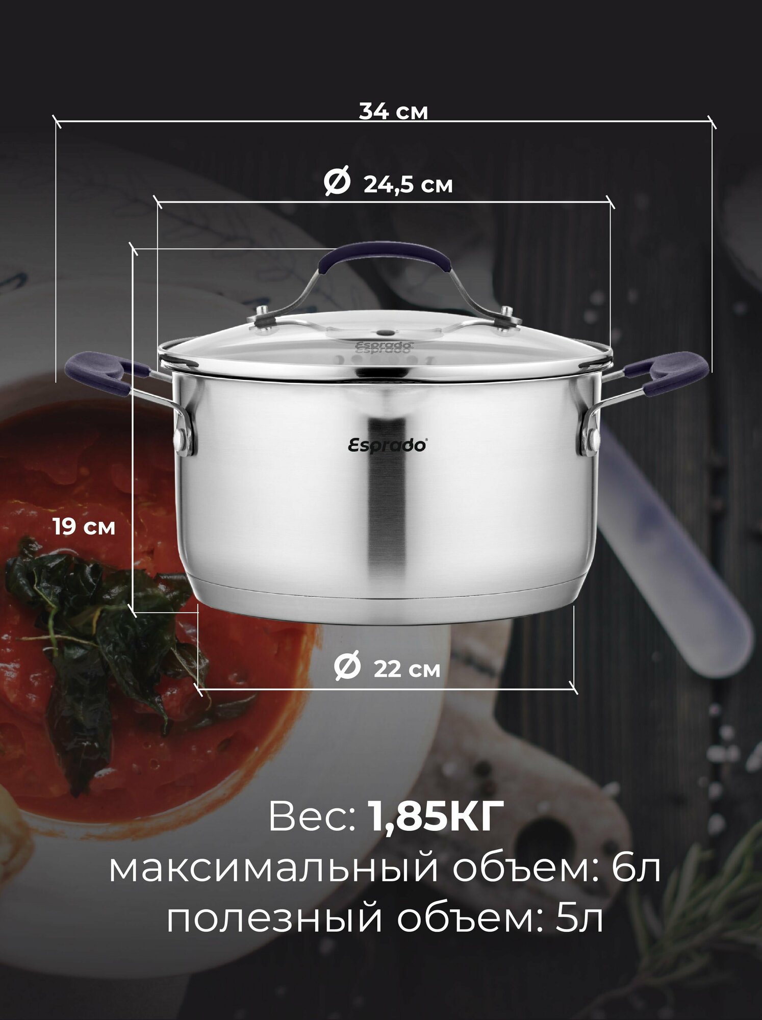 Кастрюля Кастрюля, кастрюля нержавеющая сталь, кастрюля 6 л, кастрюля c крышкой, Avila Esprado, кастрюли, нержавеющая посуда, кастрюля для индукционных плит