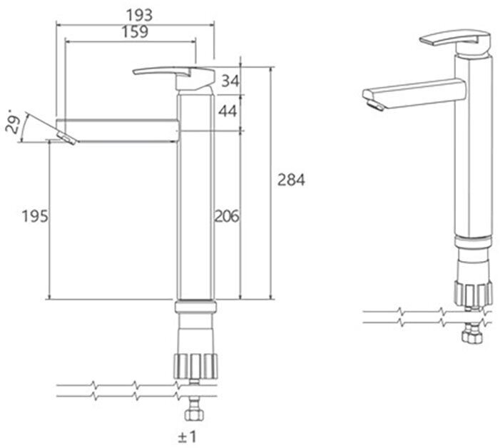 | Высота смесителя | 284 мм |