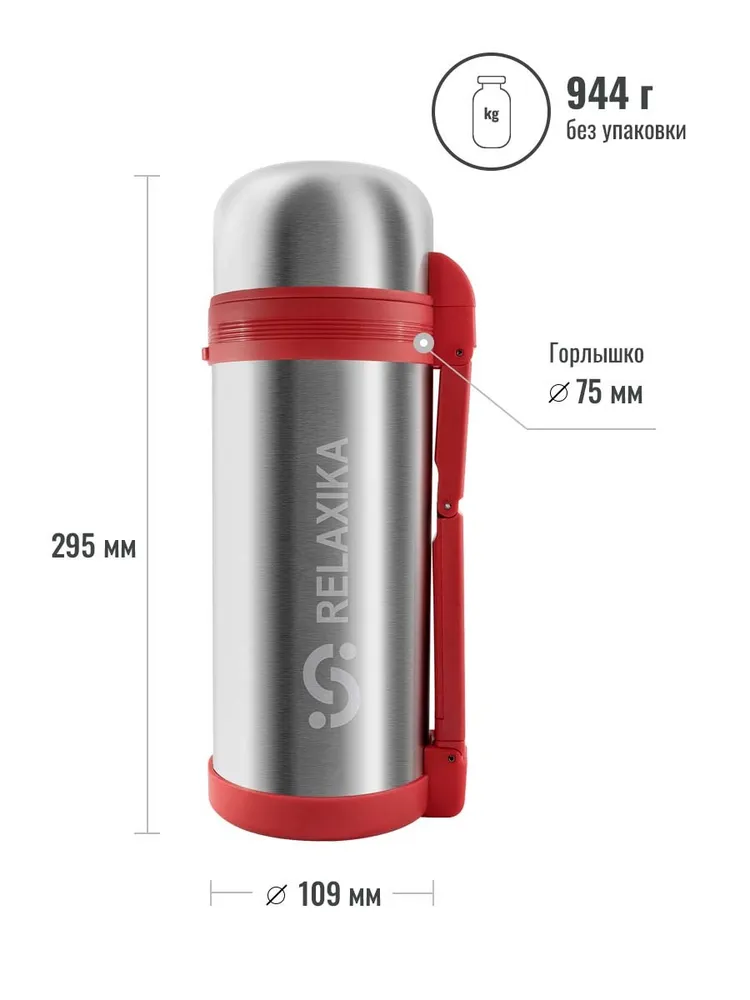 Термос RELAXIKA R201.1000.1 1 л, серебристый/красный