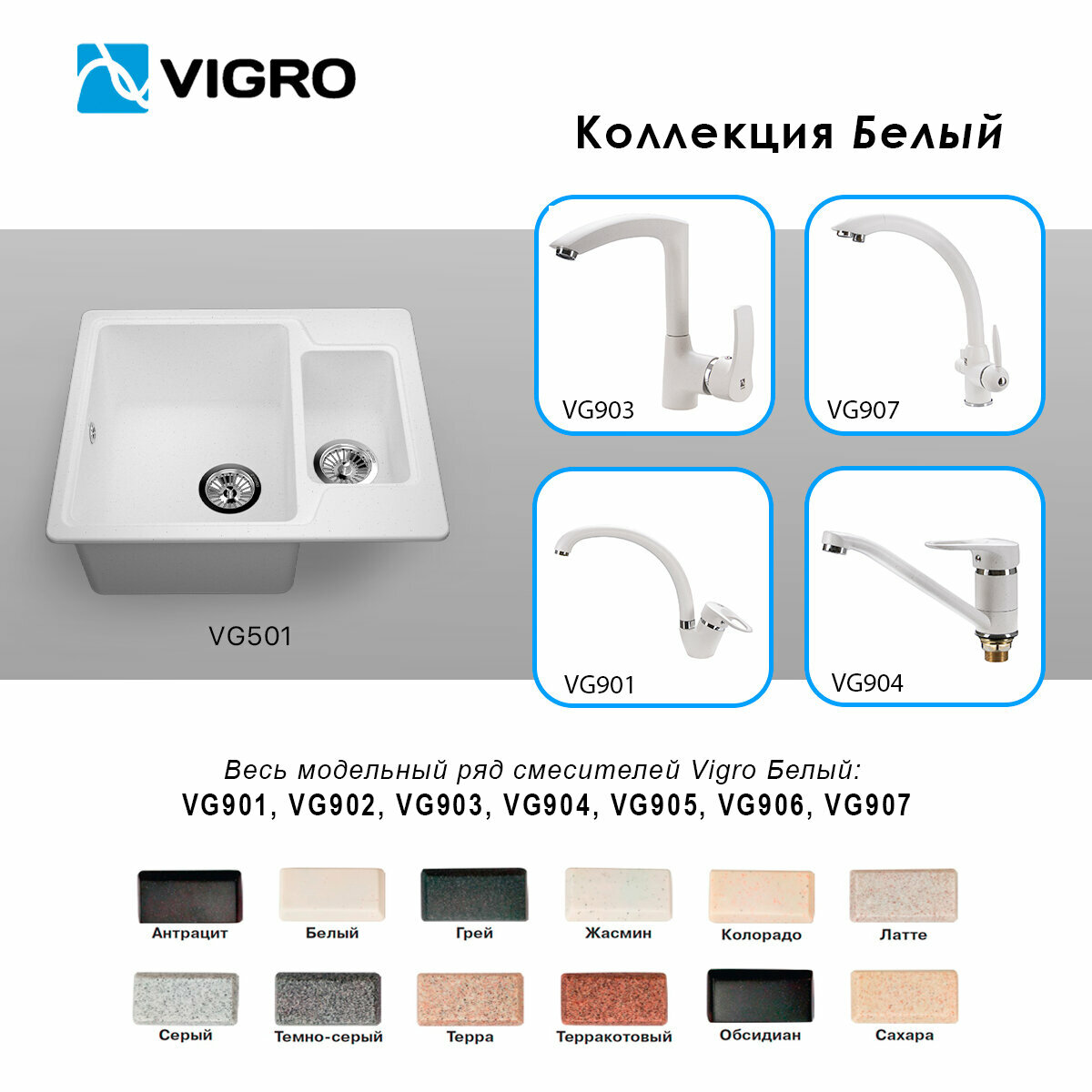 Кухонная мойка Мойка кухонная врезная Vigro VG501 белый (600*500*210)