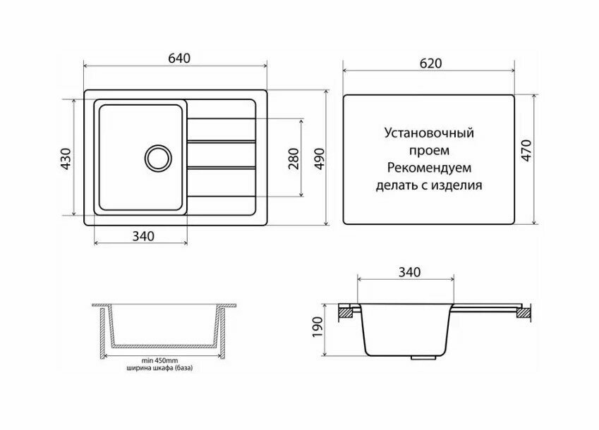 | Минимальная ширина шкафа (базы) | 450 мм |