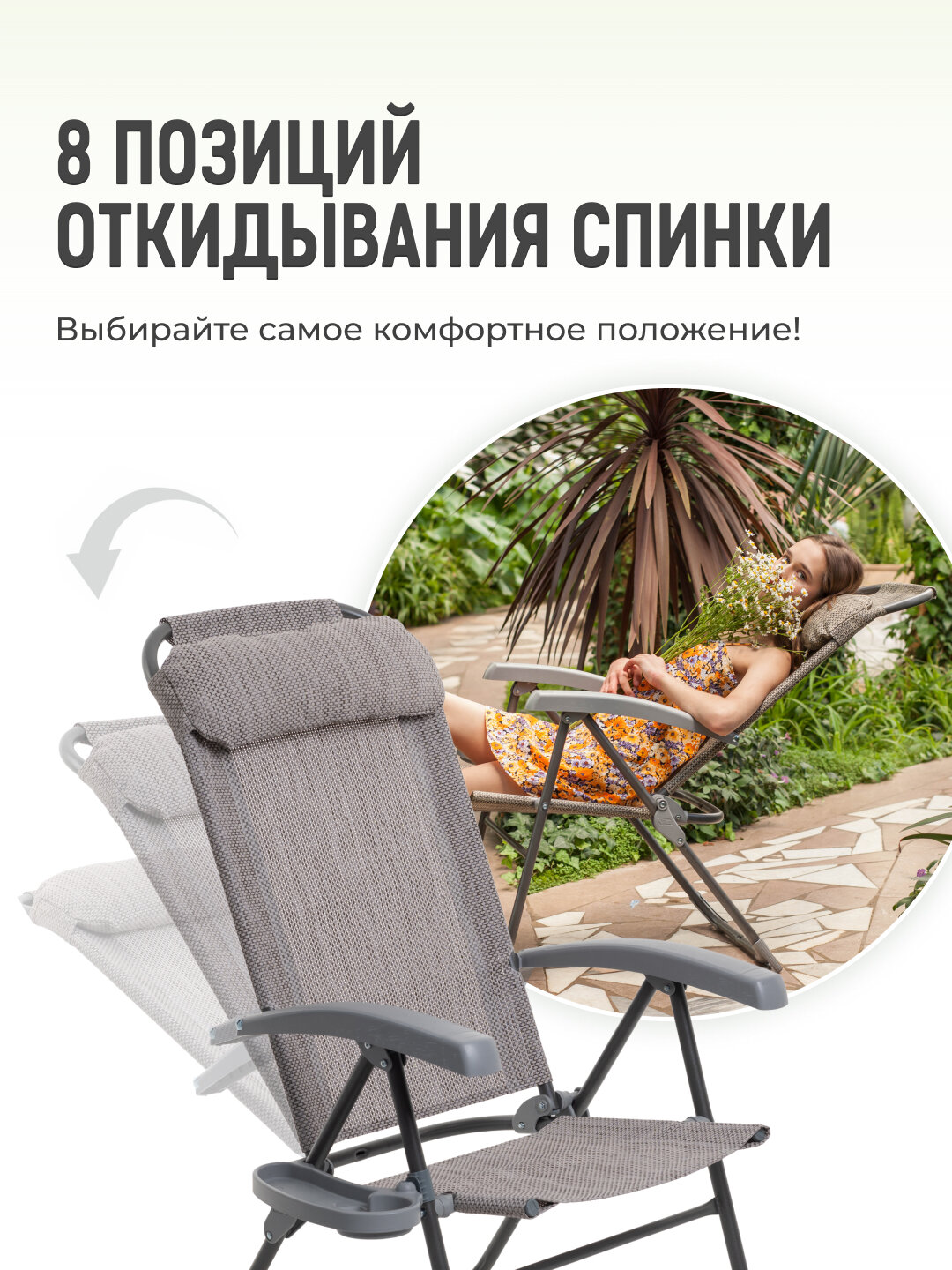 Складное садовое кресло шезлонг для дома и дачи, для рыбалки и комфортного отдыха на природе, светло-серое