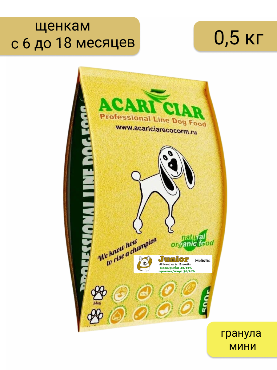 Корм для собак Сухой корм Acari Ciar для щенков с 6 до 18 месяцев Junior 0,5 кг (гранула Мини)