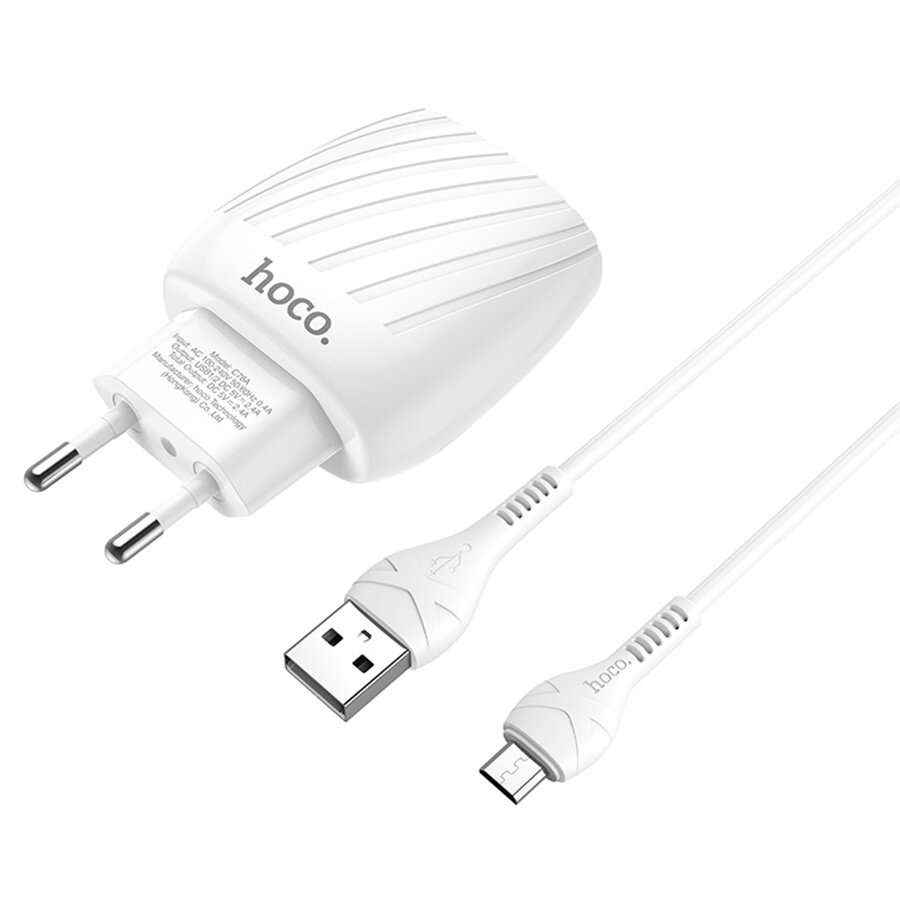 Зарядное устройство Сетевое зарядное устройство HOCO C78A Max energy 2xUSB с Кабелем USB - Micro, 2.4A, 10.8W, белый