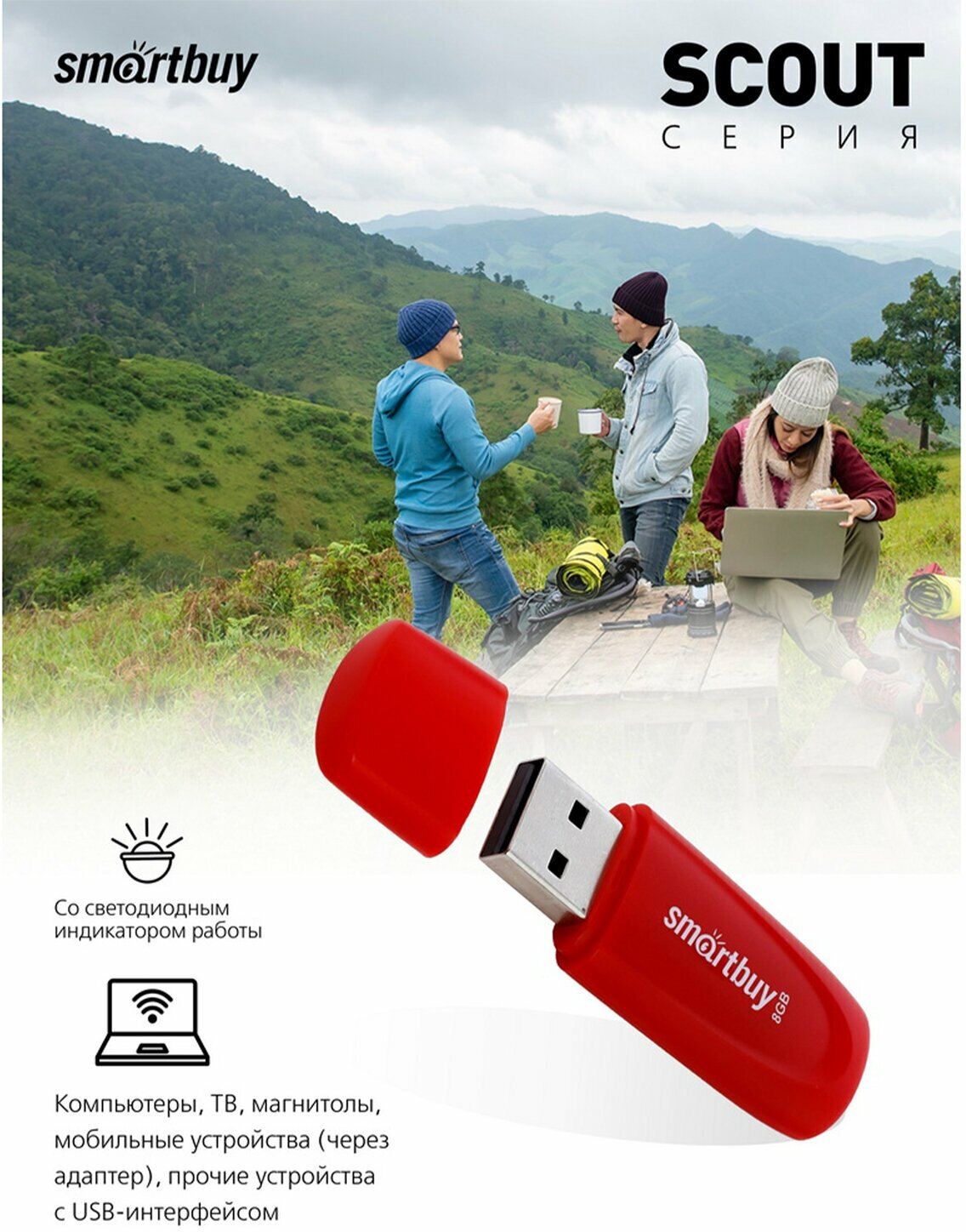 USB-флешки Память Smart Buy "Scout" 8GB, USB 2.0 Flash Drive, красный (арт. 350450)