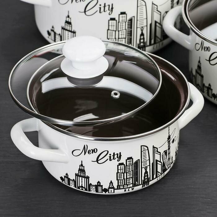 Набор кастрюль «Новый город» 3 предмета: 1 5 л 2 3 л 3 л стеклянные крышки индукция цвет белый