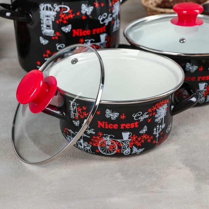 Набор эмалированных кастрюль "Отдых-5", 3 предмета: 1.9 л, 2.5 л, 5 л, индукция