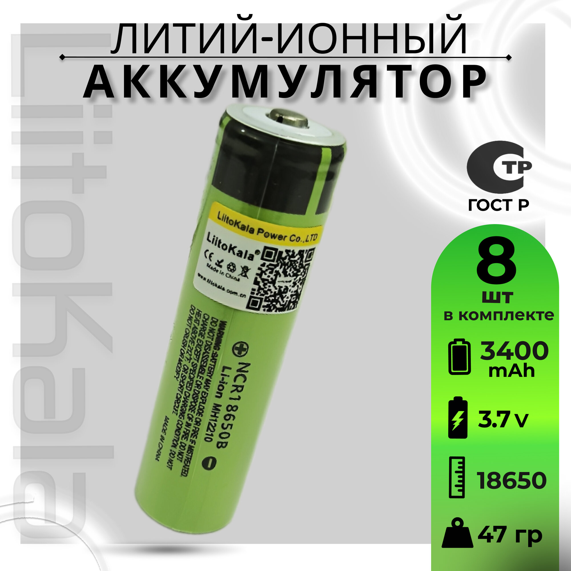 Аккумулятор 18650b LiitoKala NCR18650B мощная литий ионная батарея выпуклый "+" контакт, АКБ, Li-ion с емкостью 3400mAh/3.7В? 8 шт
