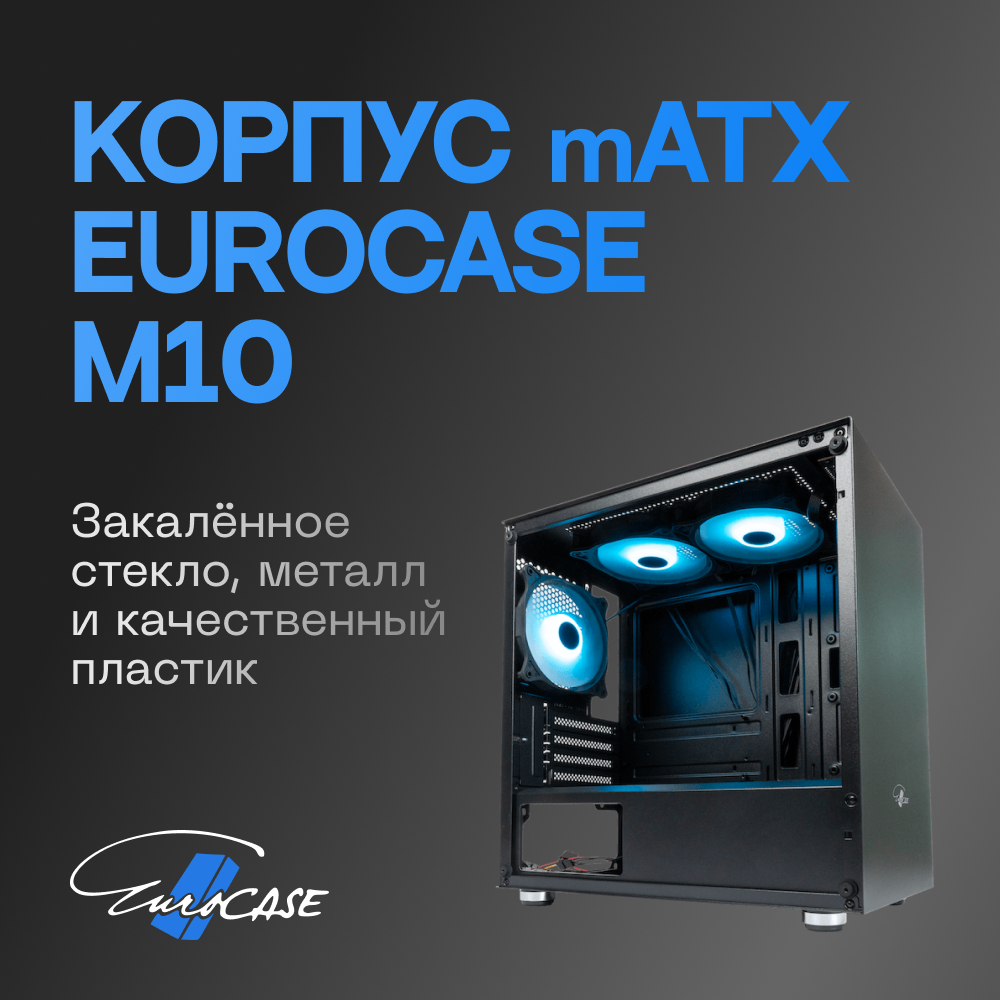 Игровой корпус для ПК Eurocase M10, Black, закаленное стекло, Micro-ATX, Mini-ITX, 2xUSB2.0, 1xUSB3.0, 3 вентилятора