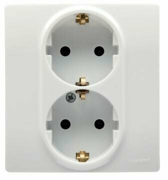 Legrand Розетка 2-м СП Etika винт. клеммы в сборе с заземл. бел. Leg 672223 1066912
