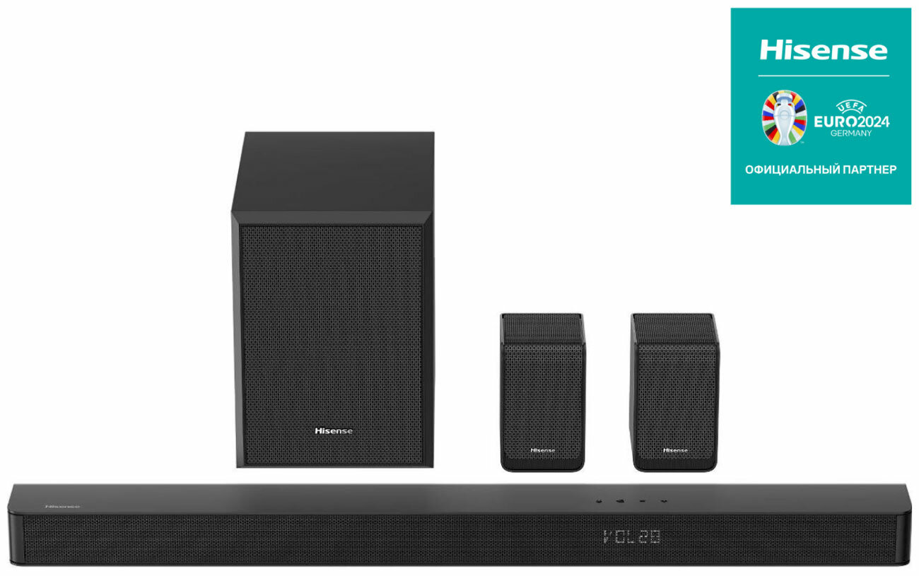 Саундбар для телевизора Hisense HS5100; мощность 540 Вт; беспроводной сабвуфер; тыловые колонки в комплекте; аудиосистема 5.1; поддержка Bluetooth 20 999 ₽ Подробнее
