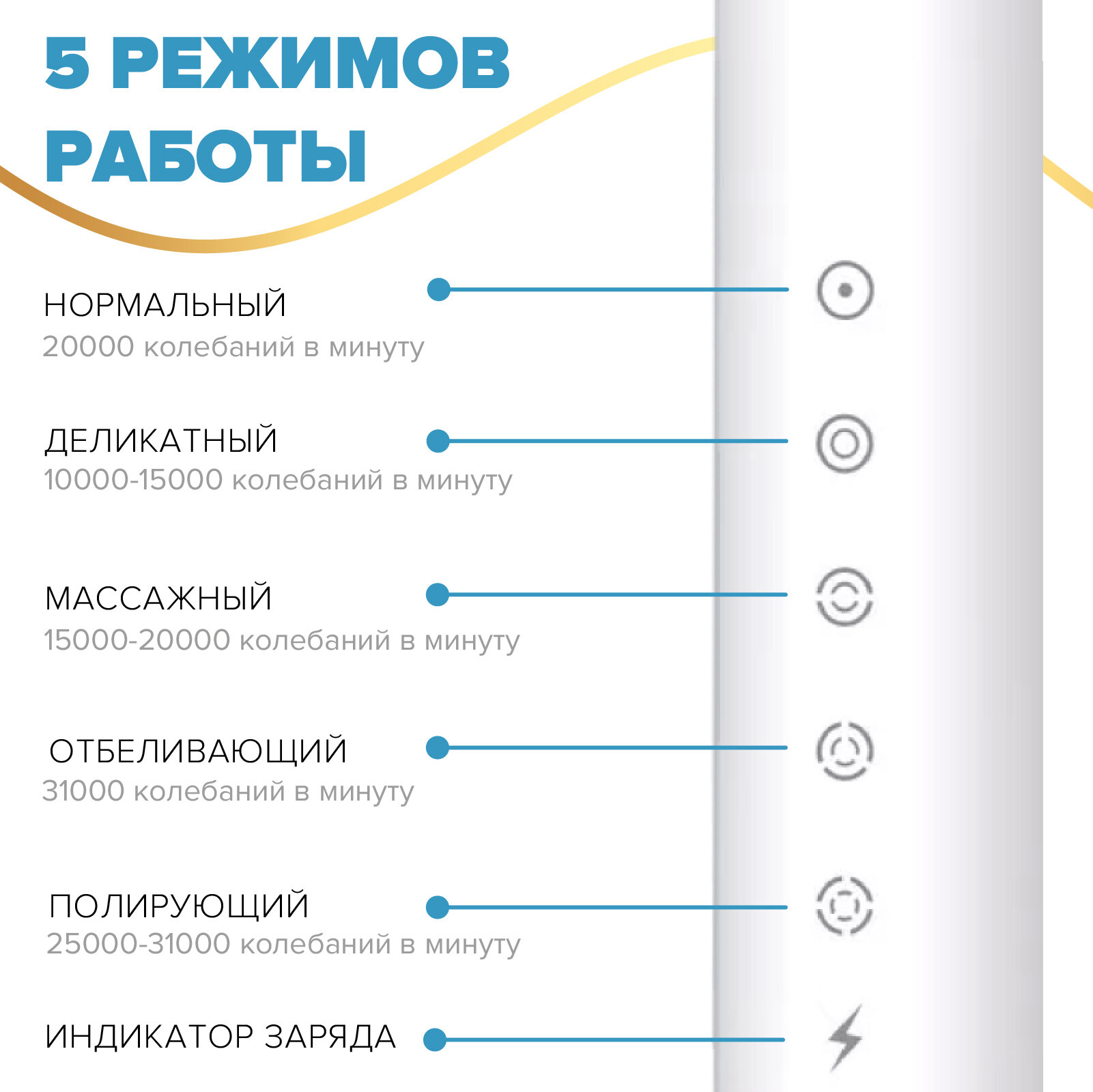 | Режимы | ежедневная чистка (2D) / деликатная чистка / полировка / отбеливание / массаж десен |