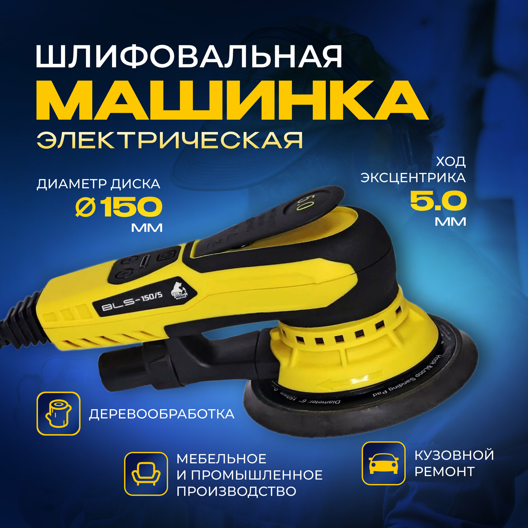 Машинка шлифовальная BLS (5.0мм; 150мм) Русский Мастер бесщеточная орбитальная РМ-381652