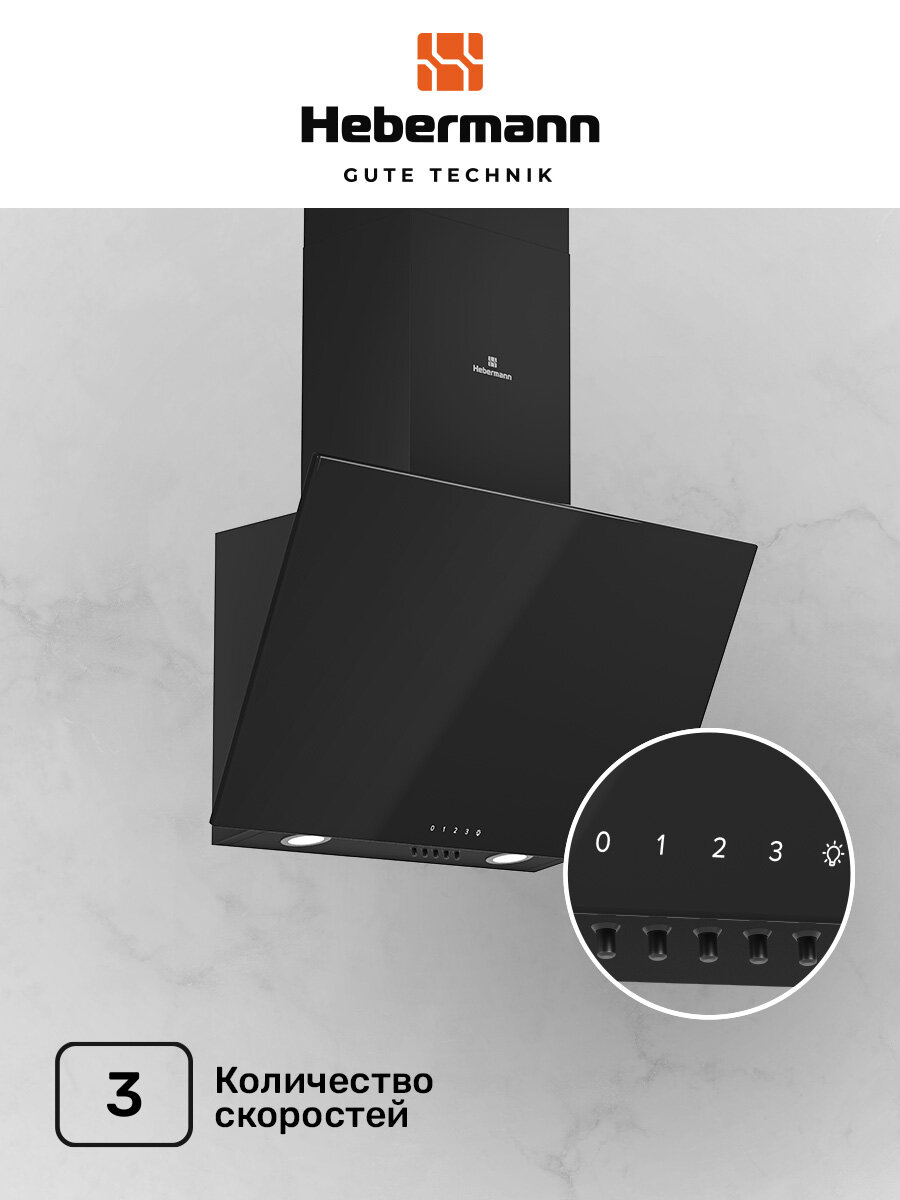 Наклонная кухонная вытяжка Hebermann HBKH 60.4 B, 60 см, черная, окрашенная сталь, стекло, производительность 700 м³/ч 8 584 ₽ Подробнее