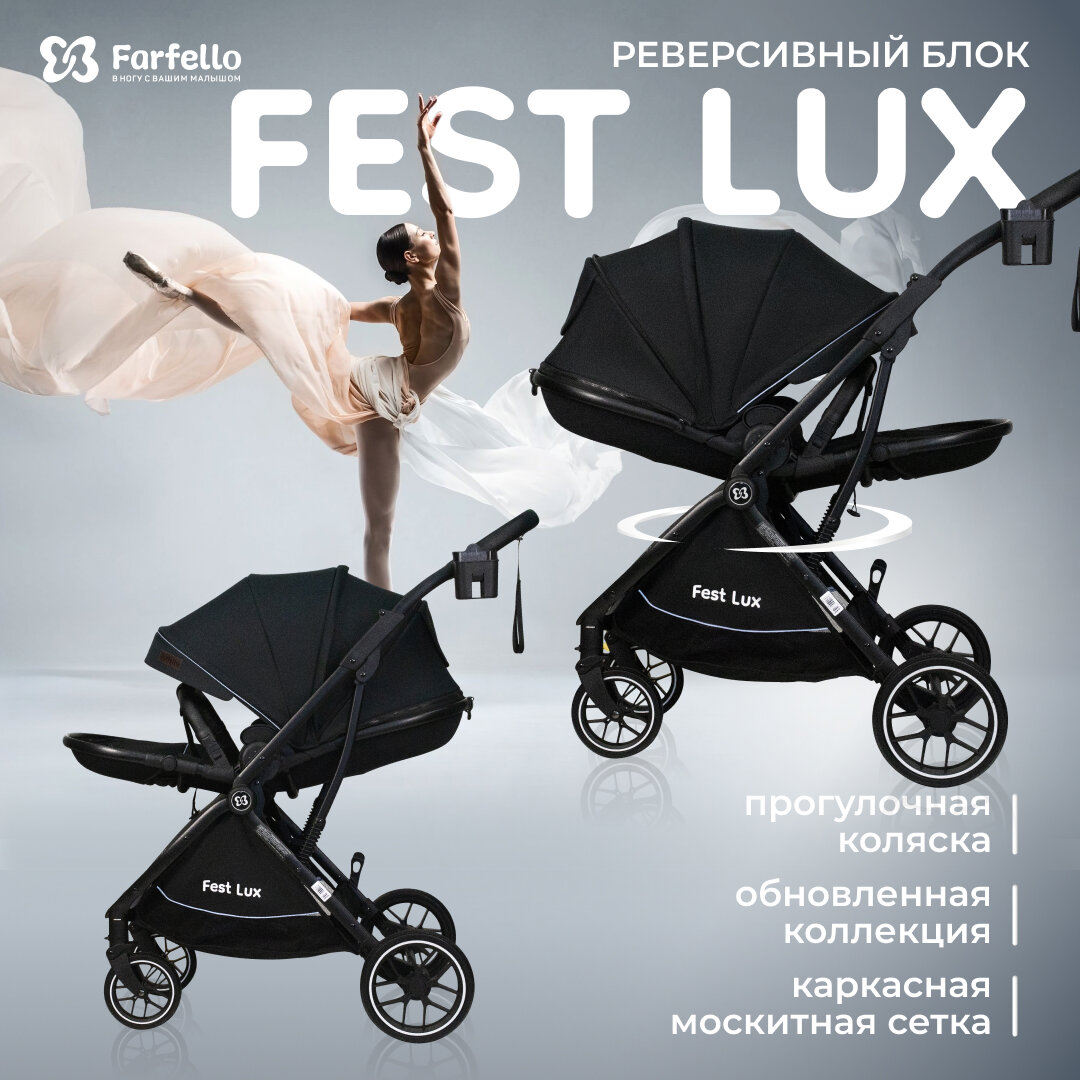Коляски Прогулочная коляска детская с реверсивным блоком Farfello Fest Lux, Черный