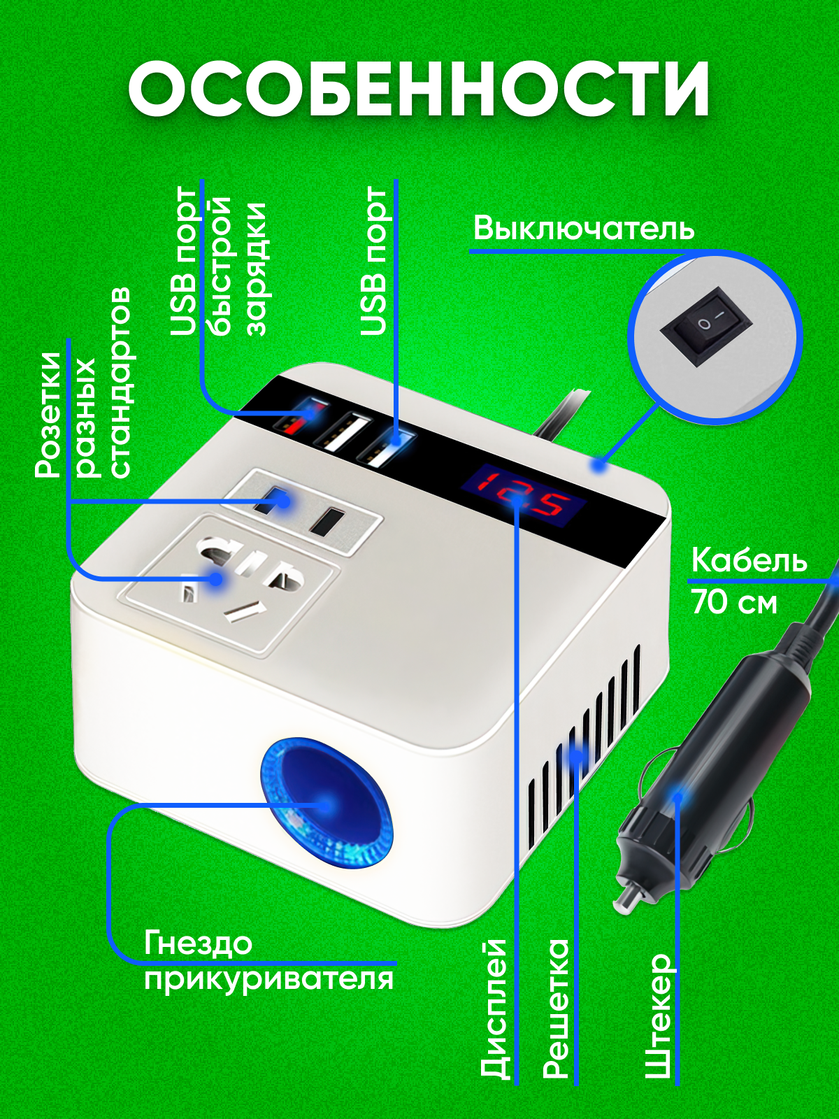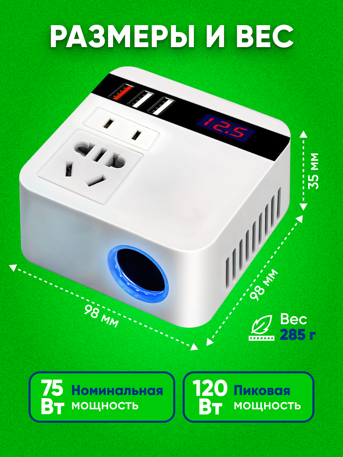 Автомобильный инвертор, преобразователь напряжения 12/24 В, белый 1 835 ₽ Подробнее