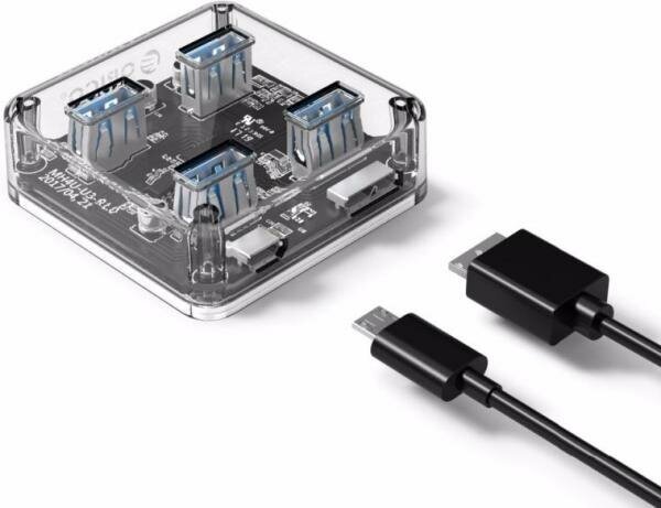 USB-концентратор ORICO MH4U-U3, разъемов: 4, 100 см, прозрачный