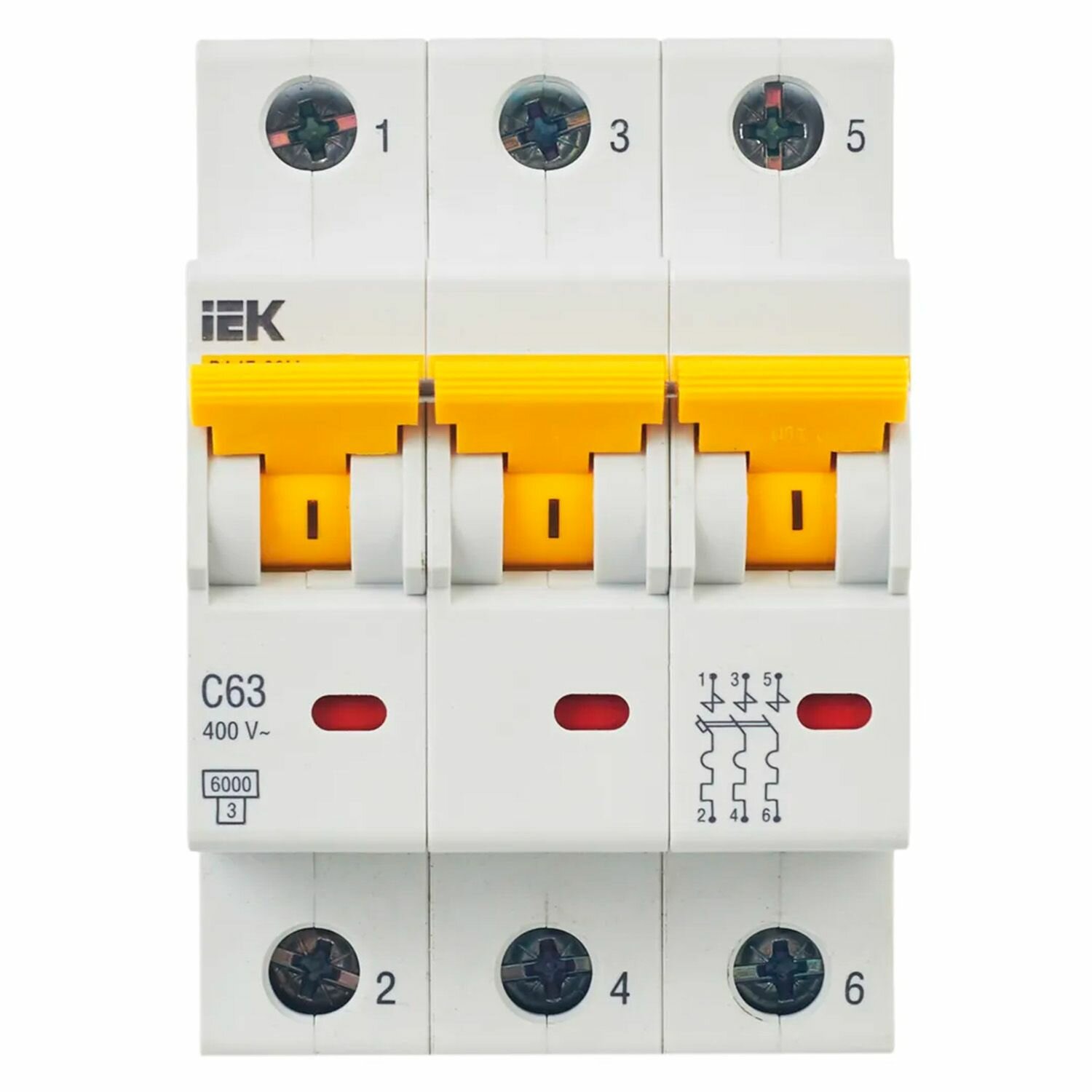 Выключатель автоматический трехполюсный 63А С ВА47-60М 6кА IEK, арт. MVA31-3-063-C
