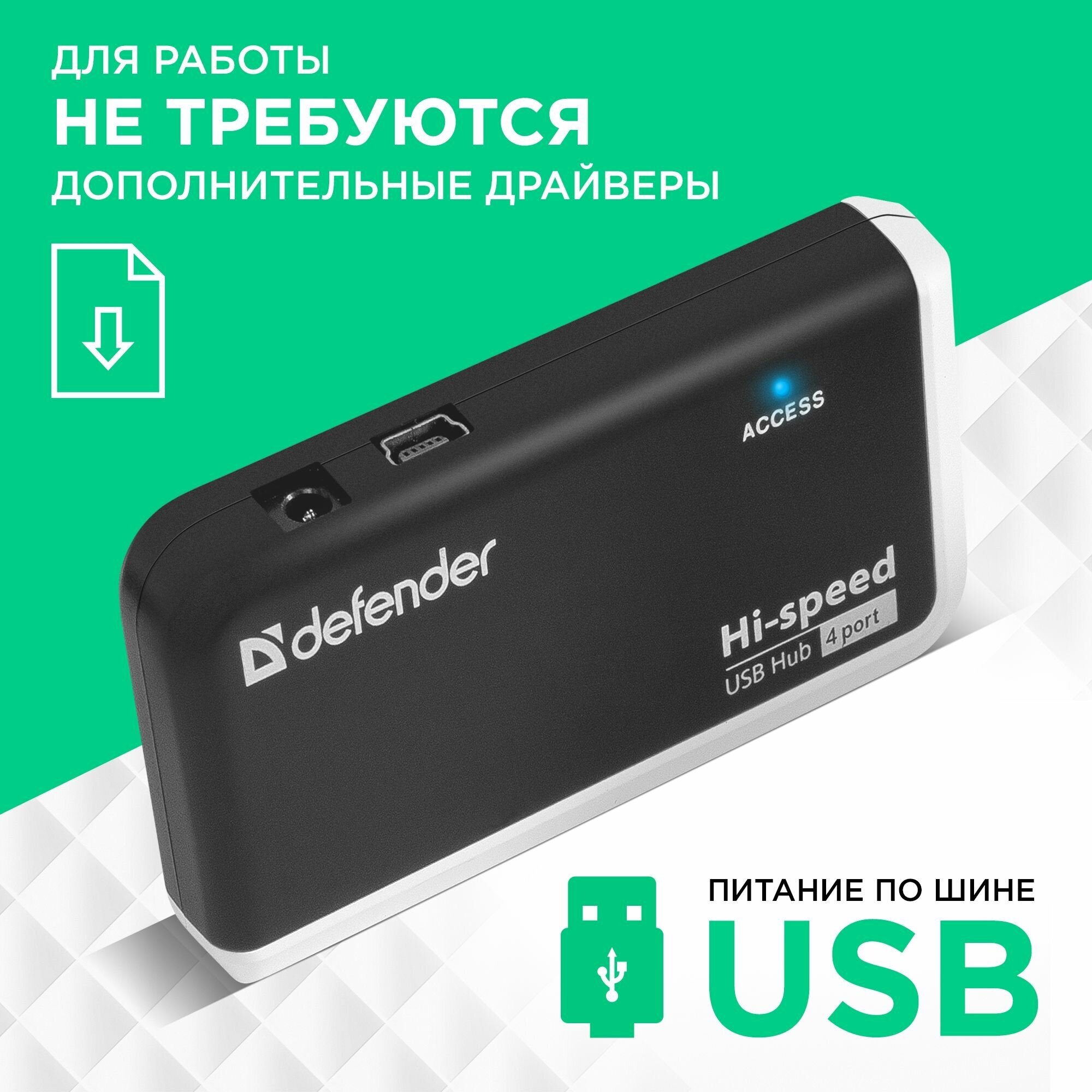 USB-концентратор Defender Quadro Infix (83504), разъемов: 4, черный