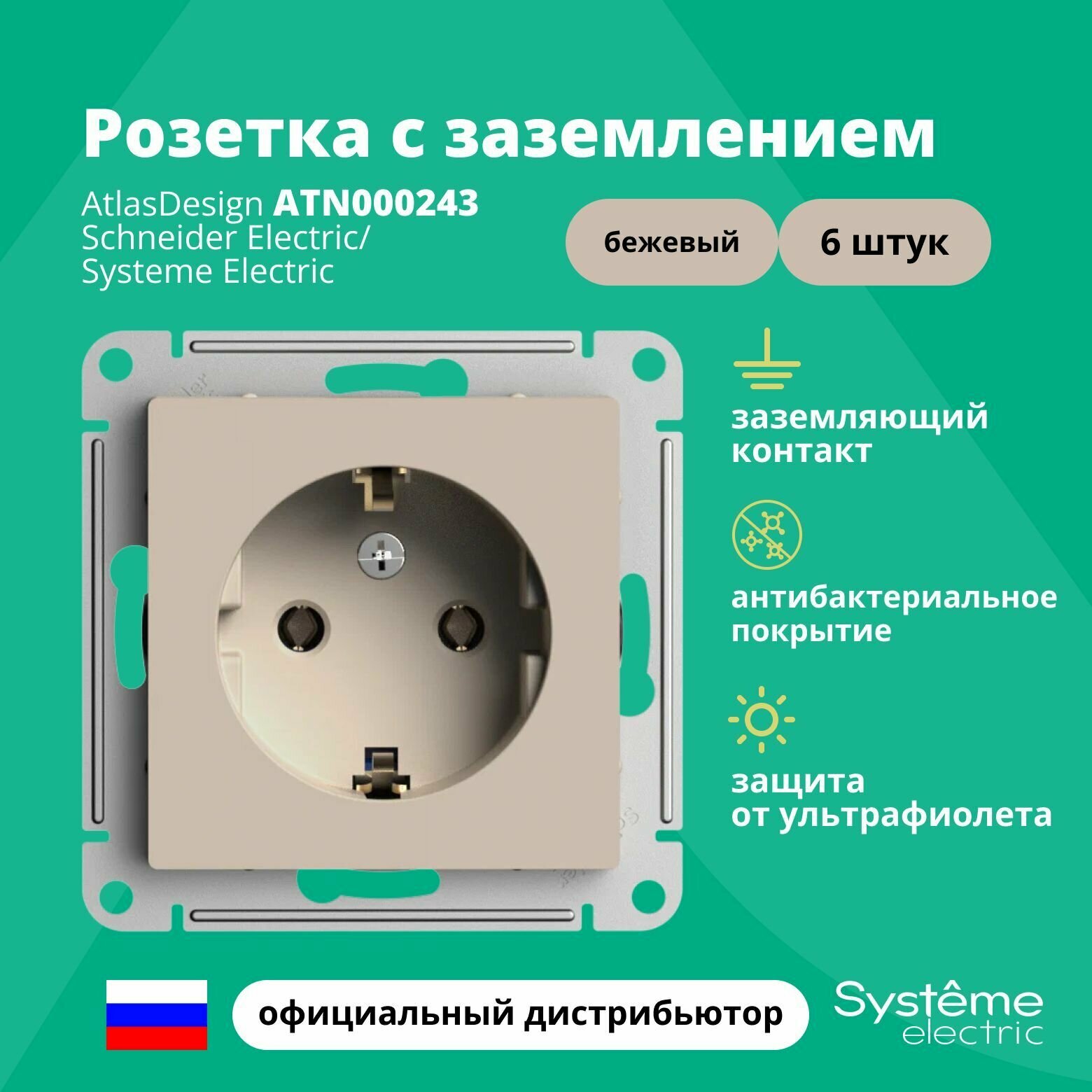 Холодильники Розетка бежевый AtlasDesign с заземлением ATN000243 Schneider Electric / Systeme Electric 6шт