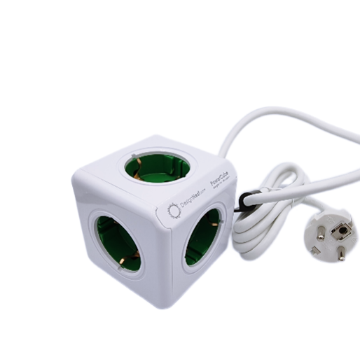 Фильтр сетевой (удлинитель) Allocacoc DesignNest PowerCube Extended GREEN 1300GN/DEEXPC, 5 розеток, провод 1,5 метра, без USB, крепление в комплекте