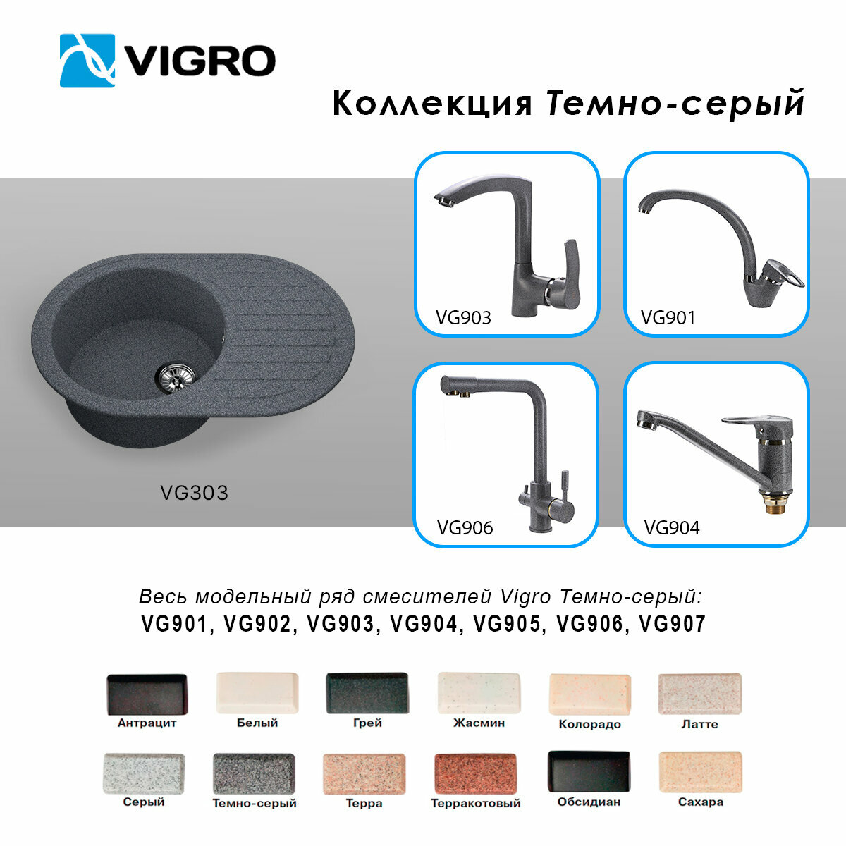 Кухонная мойка Мойка кухонная врезная Vigro VG303 темно-серый (740*490*200)